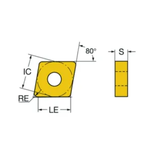 Plaquita de torneado de geometría rhomboide 80°, diseñada para pre-mecanizado con exigencia en acabado superficial. Su combinación de sustrato de carburo cementado (HC) y recubrimiento CVD TiCN + Al₂O₃ + TiN proporciona una excelente resistencia al desgaste, larga vida útil y alto rendimiento en aceros y materiales de grupo P–K (ISO TMC1).